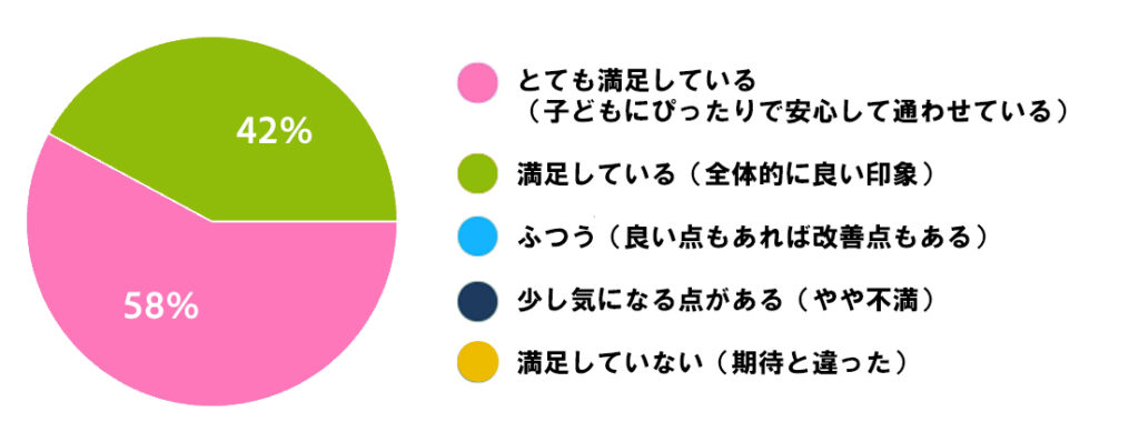 - 先生方の対応はいつも子どもに合わせて丁寧で、よく見てくださっていて満足しています。